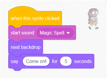 For my orginal project, I did a musical project. Once a player clicks on a character a song will start playing as they do an action. Each character plays a different melody and the players goal is to identify the melody. There are six songs that I made and they should be identifiable. The drum is there to practice keeping the beat. The three tutiorias I used for this project is the music, animate a character, add a sprite one, and more! This is a fun project for players to try and guess the songs. Click on the button below to see how many melodies you can get right!