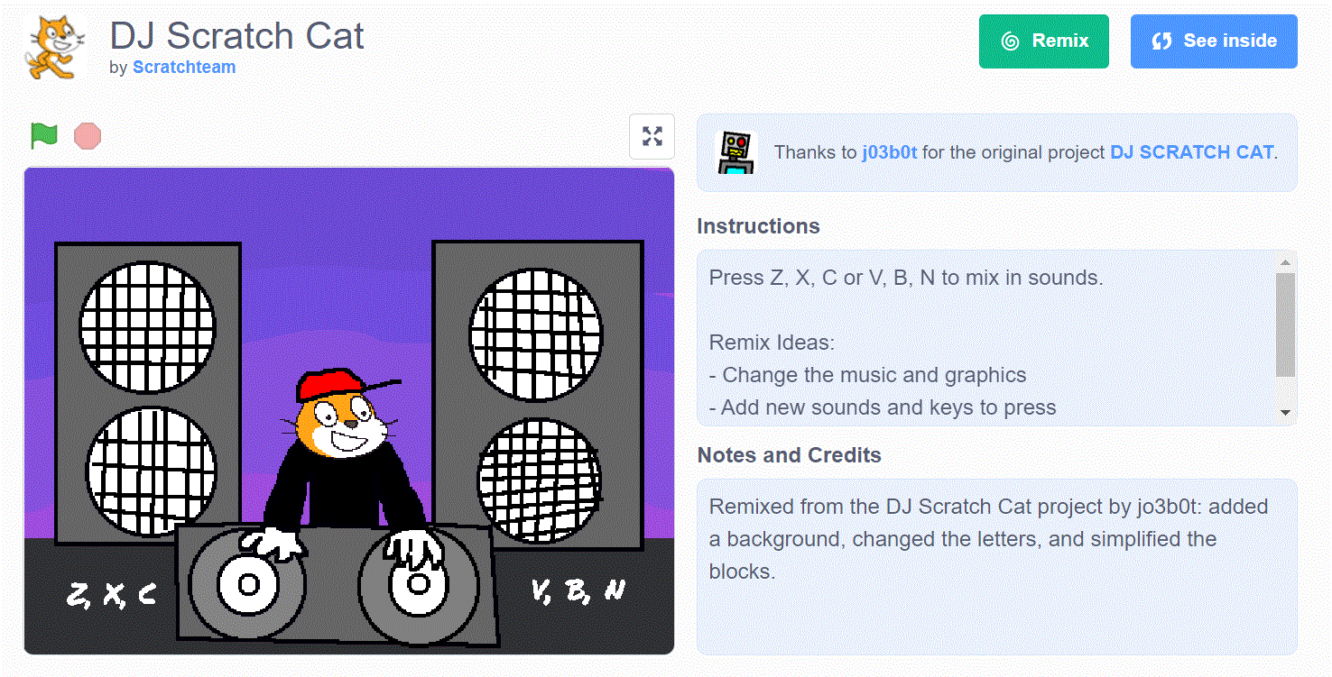 This is a fun music game that starts out with a beat and the player can make a remix by clicking letters on the keyborad to make different sound. Click on the button below to make an awesome remix!