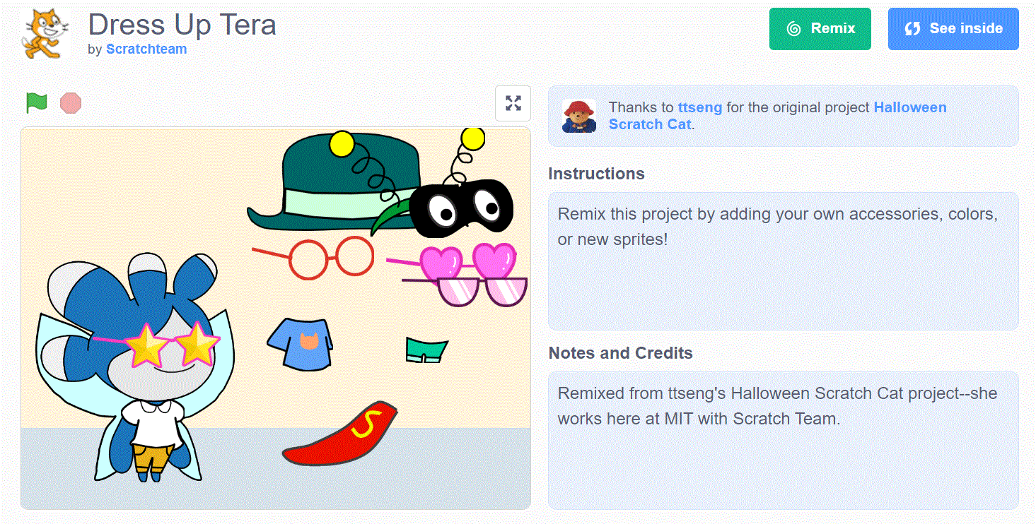 In this game, the player can dress up Tera! Using the items provided, try to figure out how many outfits Tera can try on. Be creative as you drag the items to her. Click on the button below to get started!